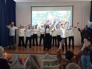 А когда на сцене актеры развернули ковер и закатали в него «Нину» из «Кавказской пленницы», все мы надеялись на Шурика, что он обязательно её спасёт. Сами же студенты группы Механиков сделали перерыв на новогоднюю разминку, добавив нотки веселья и энергии на сеанс!